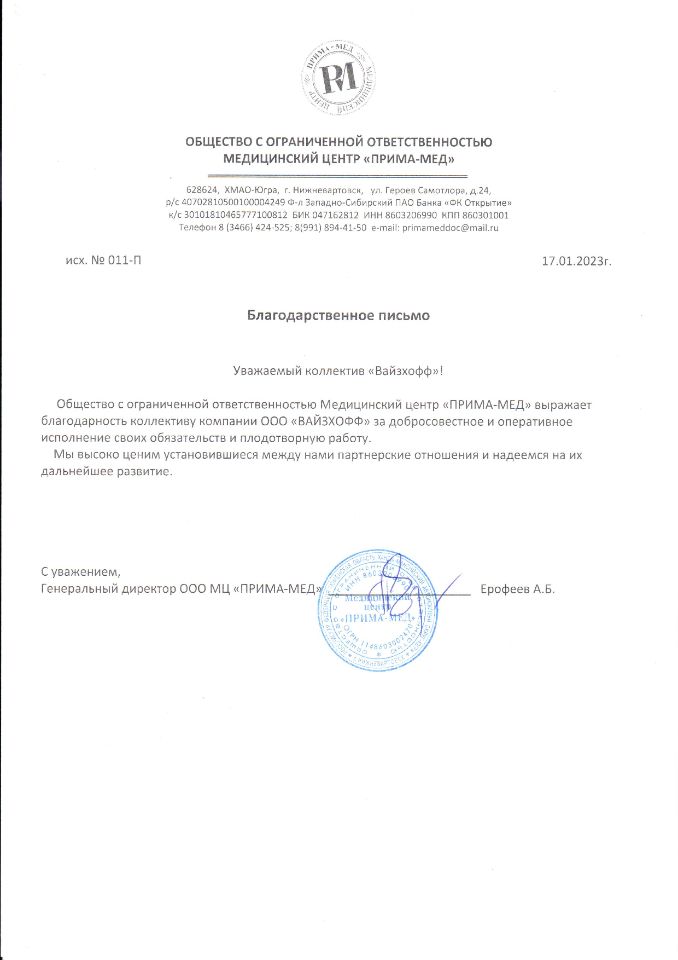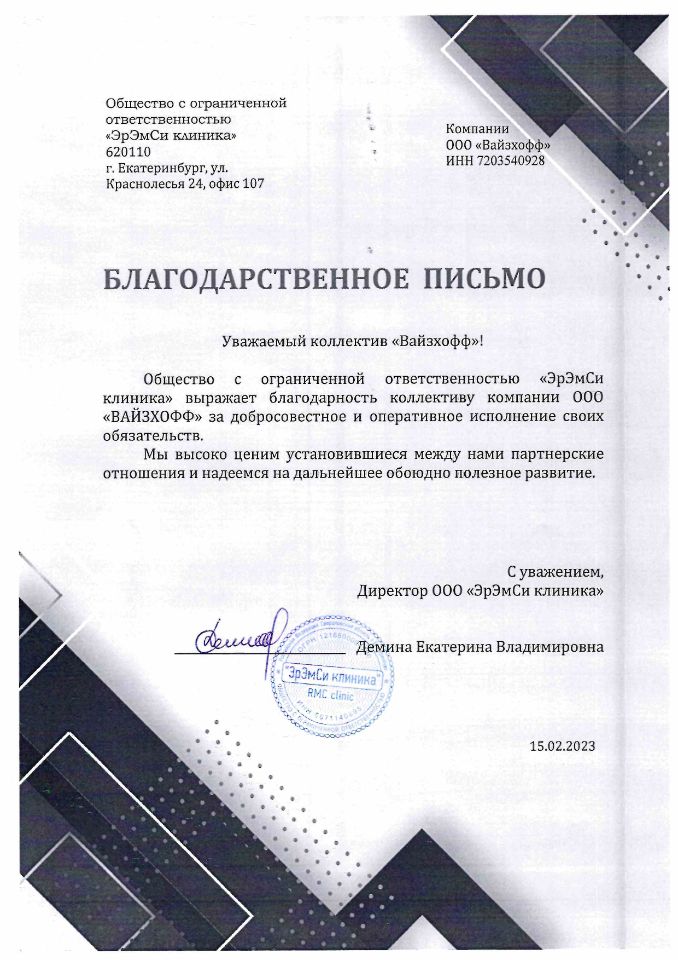 Выбирая «ВАЙЗХОФФ», вы получаете надежного партнера, способного решать самые сложные задачи в области медицинского оборудования и расходных материалов.