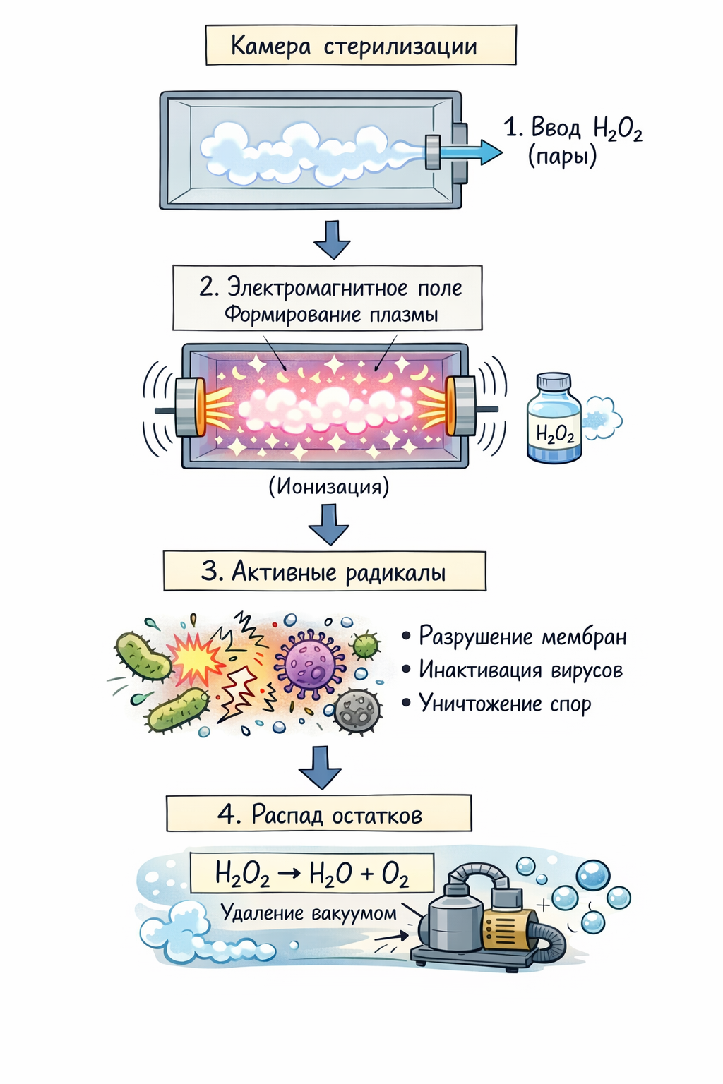 ПРИНЦИП РАБОТЫ ПЛАЗМЕННОЙ СТЕРИЛИЗАЦИИ